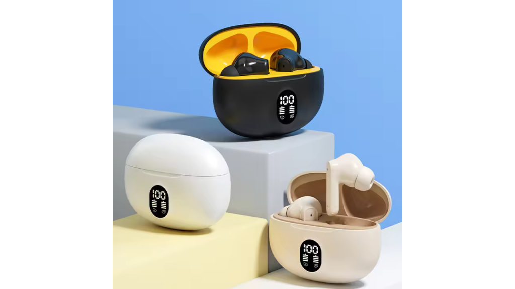 Features: LED display case showing battery, Bluetooth 5.3, HiFi deep bass, smart touch control