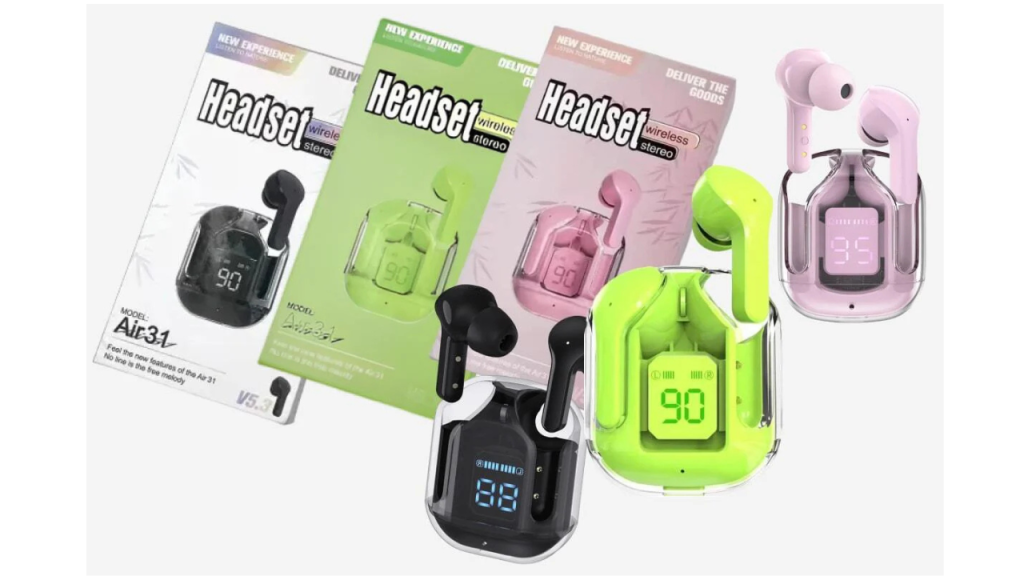 Features: Transparent charging case, Bluetooth 5.3, deep bass, long battery, smart touch control