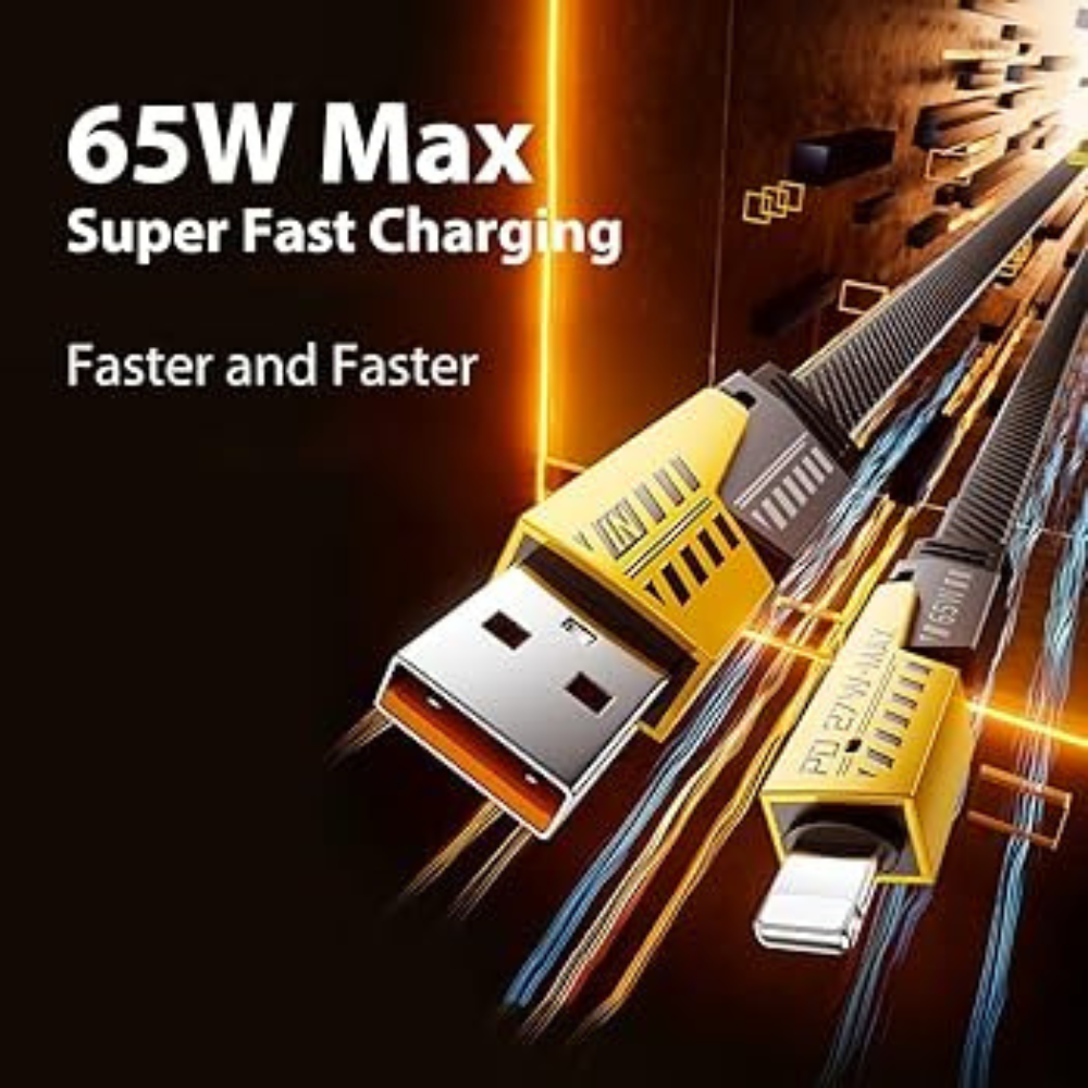 65W + 27W 4-in-1 Fast Charging Cable – USB + Type-C Input | PD Super Fast Charging | Android & iPhone Compatible