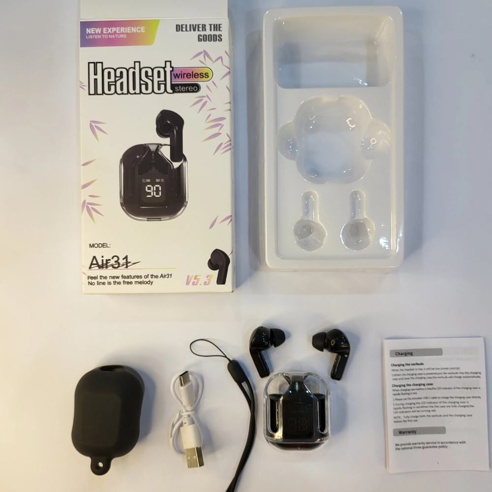 AIR 31 Wireless Earbuds are designed for people who want great sound, comfort, and style in one. With Bluetooth 5.3, these earbuds connect instantly and give a stable, lag-free experience whether youโre listening to music, gaming, or taking calls.