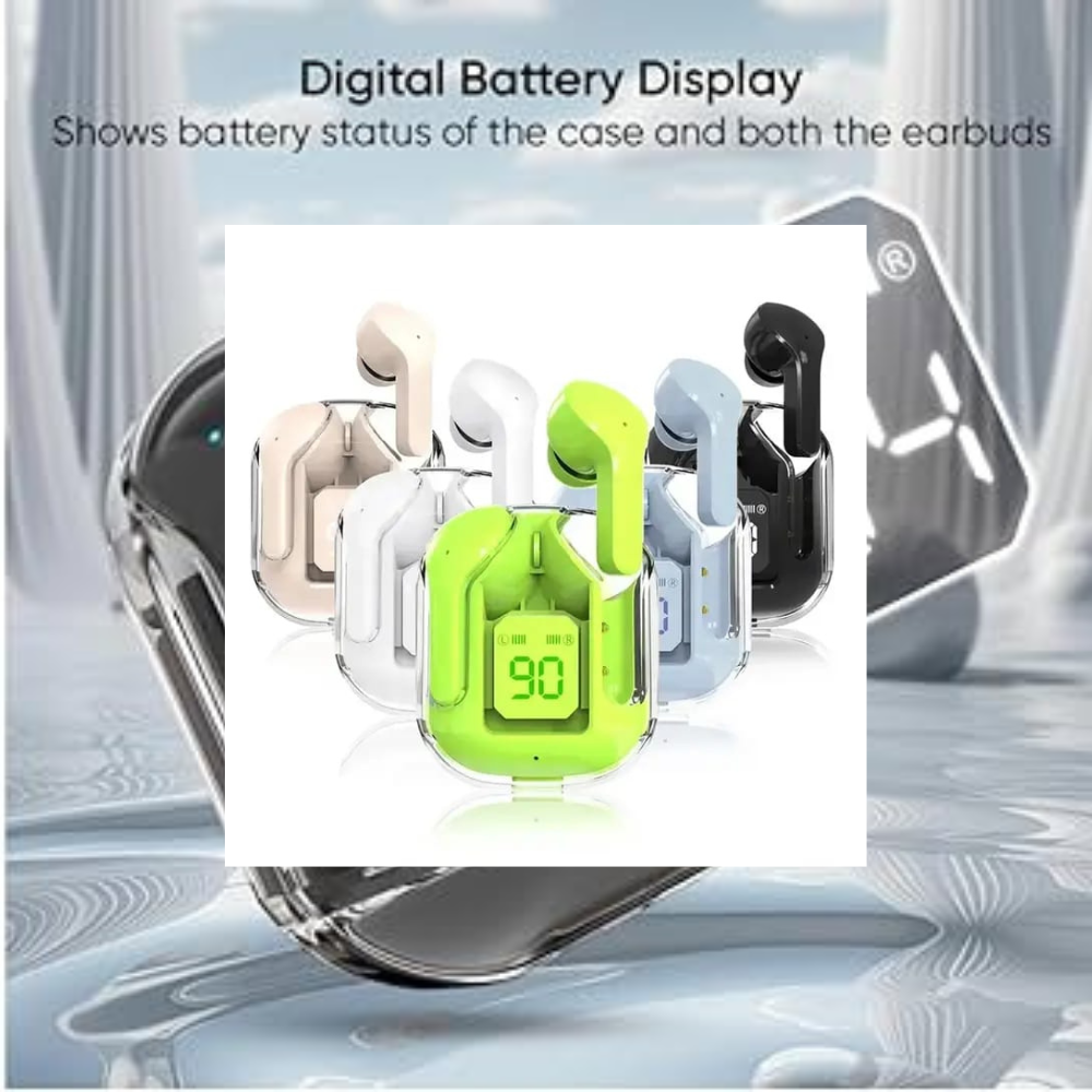 The transparent charging case gives it a modern look and shows the battery level clearly. Youโll get deep bass, clear vocals, and a noise reduction mic for smooth conversations.